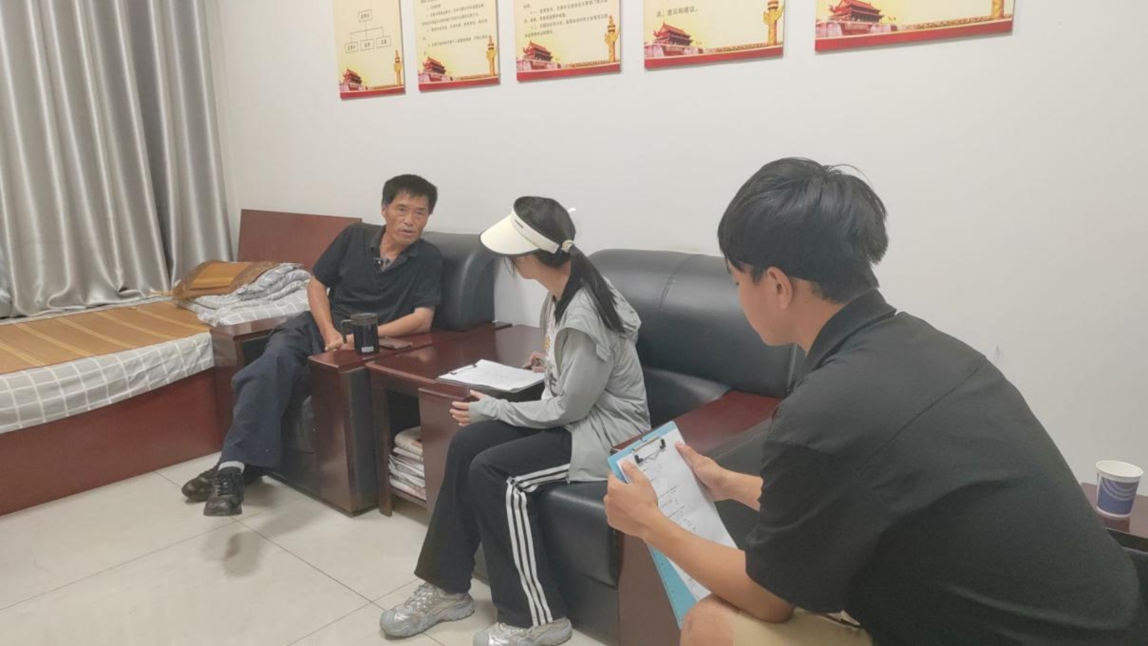 走访觅子人家,倾听乡村脉搏。7月19日,队员们分三组入户访谈及问卷调研,覆盖老党员、返乡青年、脱贫户及留守儿童家庭等30余户。 “我们村主要靠苹果、柿子、桃子等水果产业为主要创收,去年人均收入突破2万元。”村支书郭中喜指着村口新修的产业路说,“如果后续我们能够得到得到技术支持,打造出有规模的区域品牌,我相信村里的创收一定能够更上一层楼”队员们将访谈信息实时录入“乡村振兴问卷数据库”,梳理出“品牌农业附加值低”“青年劳动力外流”“老人数字鸿沟”等多项共性问题,并同步反馈给村委会,为后续政策落地提供青年视角的决策参考。