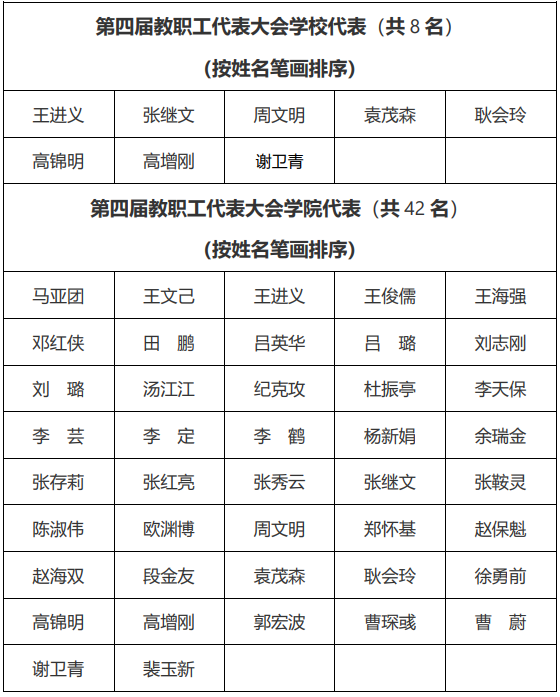 第四届教职工代表大会学校、学院代表